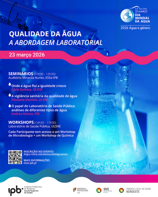 O evento pretende abordar a temática anual do Dia Mundial da Água – "Água e Género" e sensibilizar os intervenientes para a gestão da água como uma questão central de igualdade de direitos humanos. Pretende-se elucidar o público alvo com as metodologias de colheita e amostragem dos diferentes tipos de água, bem como com as medidas implementadas e as ações levadas a cabo após os incumprimentos analíticos evidenciados. Reforçar a importância e o papel do Laboratório de Saúde Pública dando a conhecer as metodologias laboratoriais (químicas e microbiológicas), efetuadas nas diferentes determinações analíticas dos diversos tipos de amostras analisadas. A consciencialização sobre a importância das análises de água é fundamental, uma vez que uma água potável é um recurso essencial e prioritário para a saúde. A sua qualidade não deve ser assumida como garantida, pelo que a identificação dos diversos contaminantes é essencial para a prevenção de doenças graves com impacto na saúde pública.