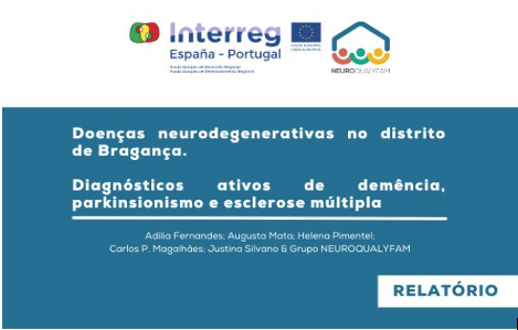 Autores: Fernandes, A., Mata, A., Pimentel, H., Magalhães, C. P., & Silvano, J. (2022). Doenças Neurodegenerativas no Distrito de Bragança: Diagnósticos ativos de Demência, Parkinsonismo e Esclerose Múltipla. Bragança: Instituto Politécnico de Bragança